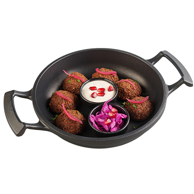 6 adet felafel topları, lahana turşusu, tahin sos ile servis.