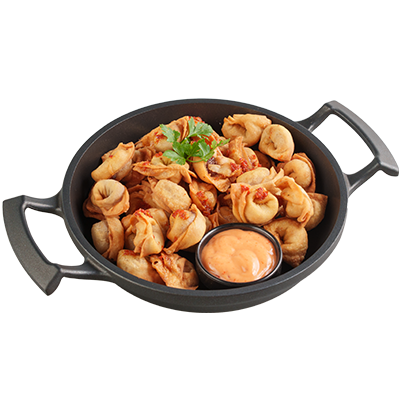 240 gr dana etli kıtır tortellini üzerinde chili yağı, sweet chili sos ile servis