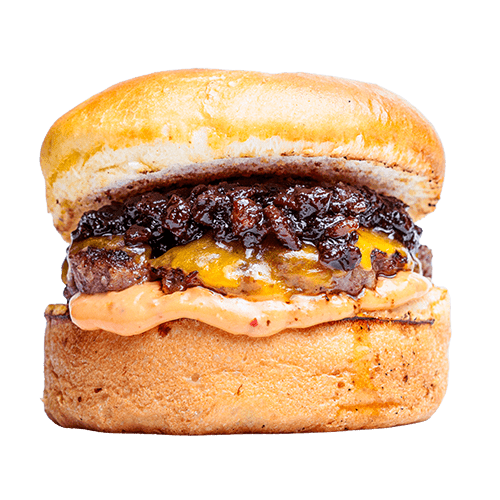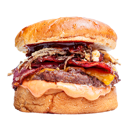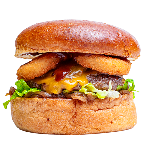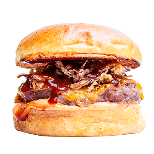 Brıoche ekmek, burger sos, peynir, dana bacon, kıtor sogan, bbq sos