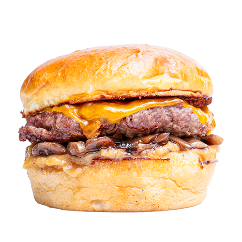 Brıoche ekmek, Hamburg Köftesi, Karamelize Soğan, Mantar, Peynir, Domuz Bacon ve patates kızartması ile ev yapımı turşularla servis edilir.