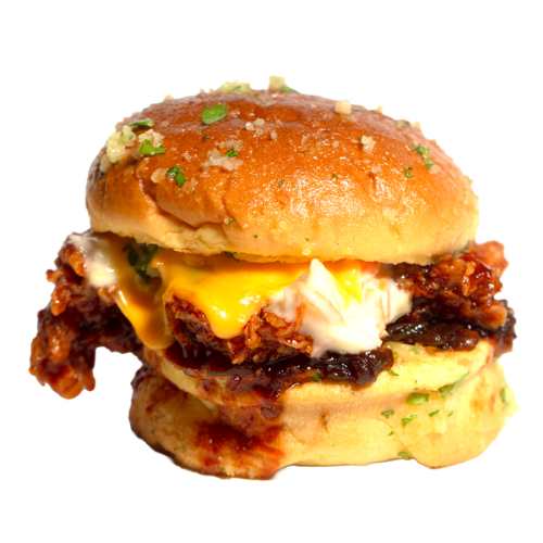 Brıoche ekmek, chili aioli, peynir, kıtır sogan, bbq sos